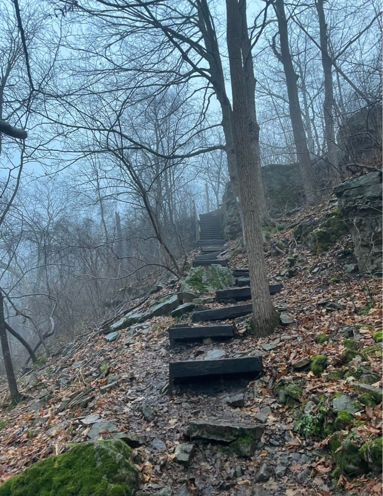 First of all, the Maitland Trail’s segments are great because they’re aptly named by what section of The Bad Thing you’re actually covering. Second of all, this is by far the most difficult section of the entire race, because it’s so incredibly technical. It definitely checks that box of being difficult to run fast out of fear for the danger, as you’re persistently swarmed by these narrow and windy stair sections. You’re crossing rivers, navigating rocky root terrain, and then trying to navigate the leaves, which cover the trail in the Fall when The Bad Thing takes place.