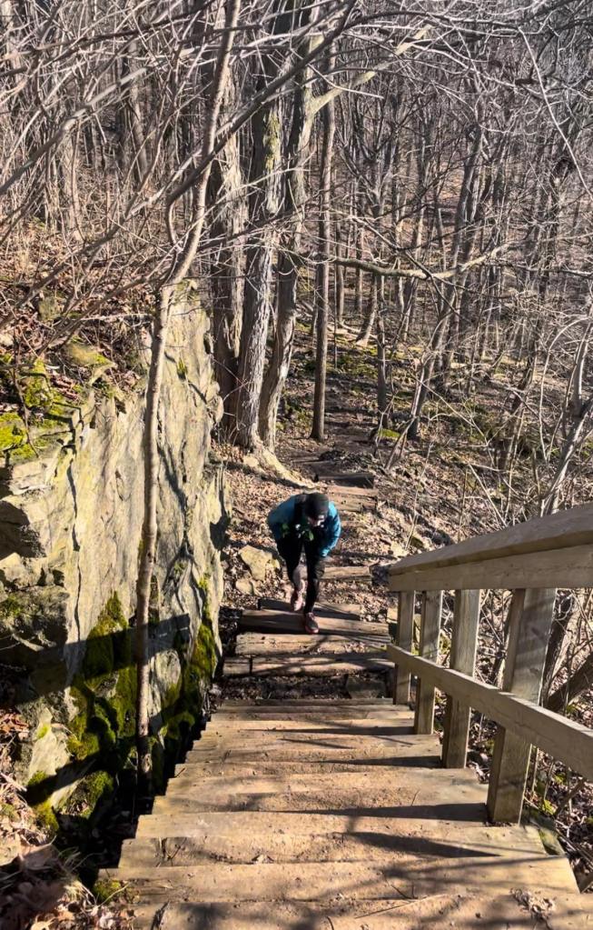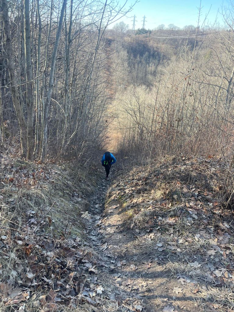 Winding, steep, and long! This hill reminds me of the start at Gorge Waterfalls – just winding singletrack one step to the next. Super runnable, but still difficult. Something about the air hits different on Sally & Dave, making it harder to ascend. It took me just under 3-minutes when I set the CR, but it always feels like longer. This is also the best place to park for the Bruce Trail in Mono, which is far and away the best part of Hockley Valley.