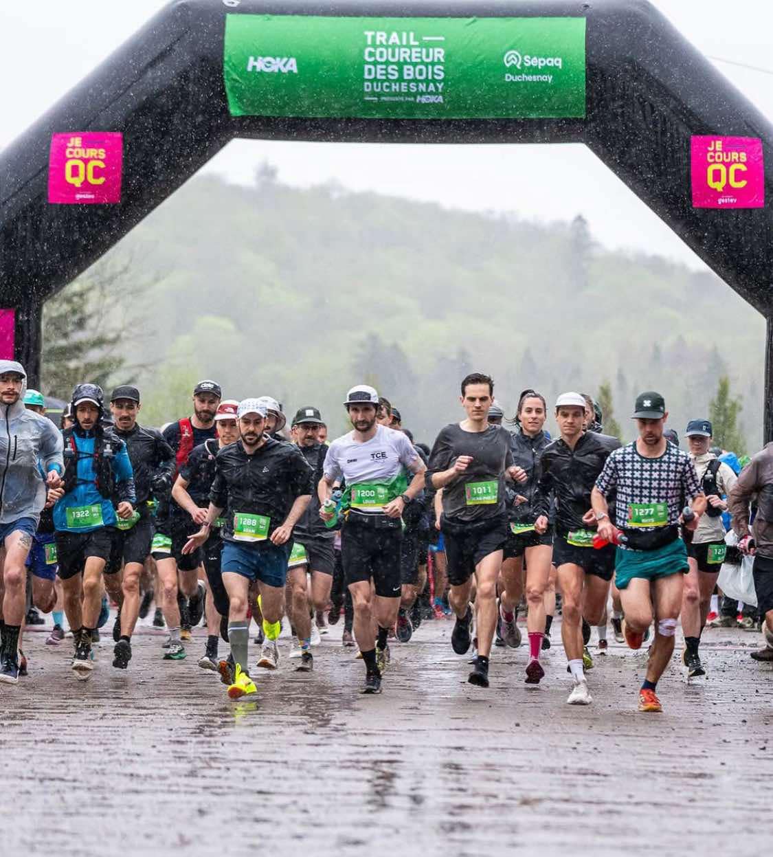 C – Test out different shoes! The greatest mistake I made this year before Trail des Bois de Duchesnay was in only wearing one pair of trail shoes for the entirety of my training. I had heard the race was to be runnable, and so I never wavered away from a pair of fast, runnable trail shoes. I had another set of trail shoes with better grip, way better in mud, but I never even opened the box! Had I opted to try those shoes out and bring them along, I would have been better able to navigate the demands of the course on the day.